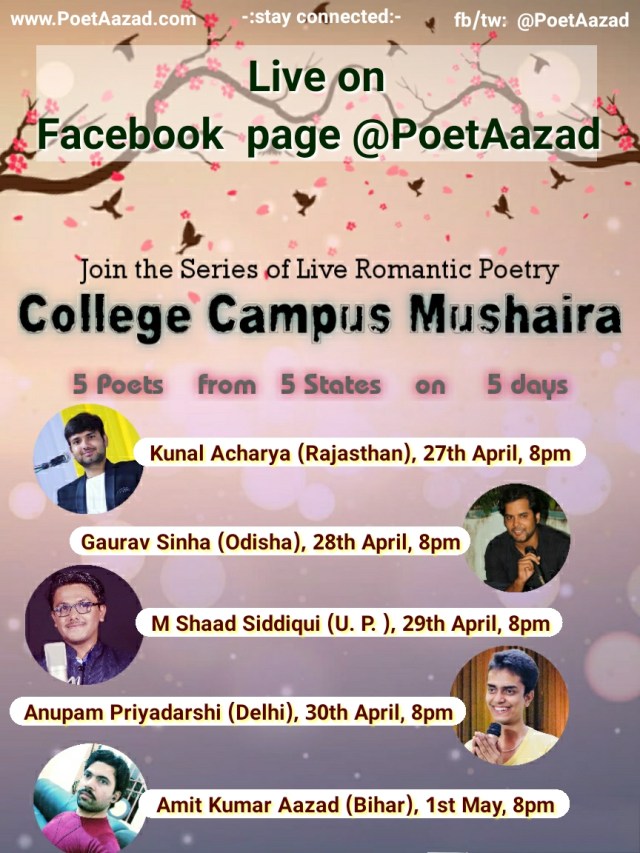 Join the series of Live Romantic Poetry by young emerging poets of India on my facebook page https://www.facebook.com/PoetAazad/